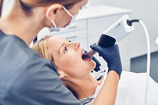 セレック PrimeScanを使用するとデジタルスキャニング(光学印象)で歯型を記録するので、従来の方法ような歯の型取りの不快感はありません。